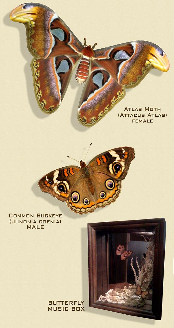 Also when my dad and I were talking I told him about the butterfly specimens I bought the other day so I showed him the specimens and the other butterfly & moth specimens this eBay seller has and I told him how much I liked the Atlas Moth specimens he had on the website so my dad offered to buy them for me since I always buy him stuff for his crafts. So I left my parents yesterday with a treasured music box from my childhood AND a 2 specimen Atlas Moth for my collection.